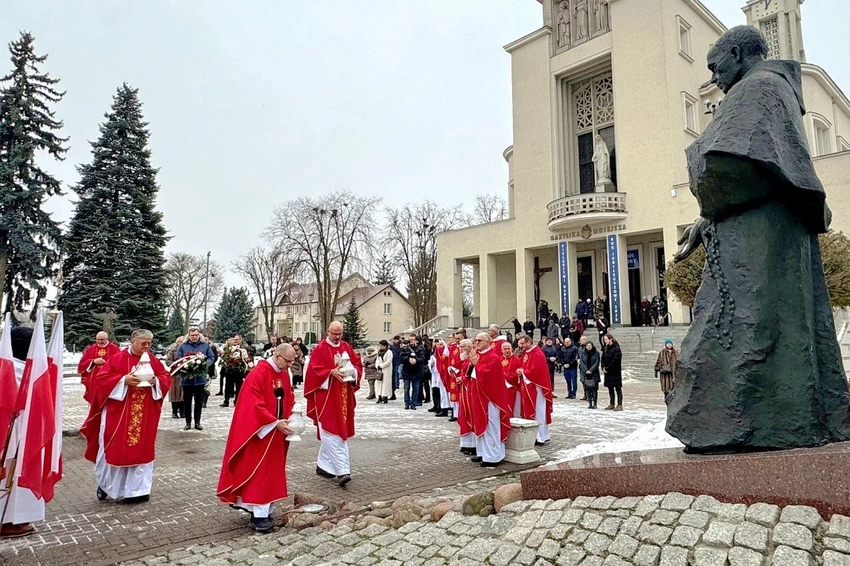 We wtorek 17 lutego 2026 r. obchodziliśmy w Niepokalanowie 85. rocznicę aresztowania przez Niemców o. Maksymiliana Kolbego wraz z 4 jego współpracownikami. W okolicznościowej Mszy św. w bazylice, sprawowanej o godz. 11.00 pod przewodnictwem o. prowincjała Piotra Żurkiewicza, wzięło udział – oprócz wiernych z okolicznych miejscowości – wielu zaproszonych gości. Nie zabrakło lokalnych polityków i samorządowców, przedstawicieli gmin, związanych z życiem o. Maksymiliana, reprezentantów służb mundurowych oraz zaprzyjaźnionych stowarzyszeń.