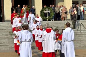 Poświęcenie palm na każdej Mszy św. Obrzęd święcenia palm to znak, że wierni pragną naśladować tłum witający Jezusa – wjeżdżającego do Jerozolimy – będąc jednocześnie przygotowanymi na nadchodzące wydarzenia Wielkiego Tygodnia.
